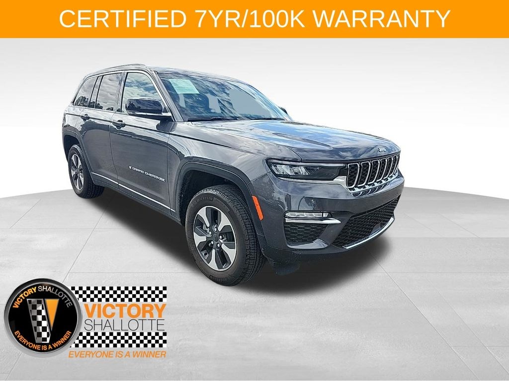 Certified. Baltic Gray Metallic Clearcoat 2022 Jeep Grand Cherokee 4xe 4WD 8-Speed Automatic 2.0L I4 DOHC 2.0L I4 DOHC, 4WD, 10 Speakers, 10.1" Touchscreen Display, 3.70 Rear Axle Ratio, 4-Wheel Disc Brakes, 4G LTE Wi-Fi Hot Spot, ABS brakes, Air Conditioning, All Radio Equipped Vehicles, Alloy wheels, AM/FM radio: SiriusXM with 360L, Anti-whiplash front head restraints, Apple CarPlay, Audio memory, Auto High-beam Headlights, Automatic temperature control, Brake assist, Bumpers: body-color, Capri Leather Seats, Compass, Connected Travel & Traffic Services, Connectivity - US/Canada, Delay-off headlights, Disassociated Touchscreen Display, Driver door bin, Driver vanity mirror, Dual front impact airbags, Dual front side impact airbags, Dual-Pane Panoramic Sunroof (DISC), Electronic Stability Control, For Details, Visit DriveUconnect.com, For More Info, Call 800-643-2112, Four wheel independent suspension, Front anti-roll bar, Front Bucket Seats, Front Center Armrest w/Storage, Front dual zone A/C, Front fog lights, Front Passenger Interactive Display, Front reading lights, Fully automatic headlights, Garage door transmitter, Global Telematics Box Module (TBM), Google Android Auto, GPS Antenna Input, GPS Navigation, HD Radio, Heated door mirrors, Heated front seats, Heated rear seats, Heated steering wheel, Heavy Duty Suspension, Illuminated entry, Integrated Center Stack Radio, Integrated Voice Command w/Bluetooth, Knee airbag, Leather steering wheel, Low tire pressure warning, Memory seat, Occupant sensing airbag, Outside temperature display, Overhead airbag, Overhead console, Panic alarm, ParkView Rear Back-Up Camera, Passenger door bin, Passenger vanity mirror, Power door mirrors, Power driver seat, Power Liftgate, Power passenger seat, Power steering, Power windows, Pur Wrapped Instrument Panel, Quick Order Package 27F, Radio data system, Radio: Uconnect 5 Nav w/10.1" Display, Radio: Uconnect 5 w/8.4" Display, Rear anti-roll bar, Rear reading lights, Rear window defroster, Rear window wiper, Remote keyless entry, Roof rack: rails only, Security system, SiriusXM Radio Service, SiriusXM Satellite Radio, SiriusXM w/360L, Speed control, Speed-Sensitive Wipers, Split folding rear seat, Spoiler, Steering wheel mounted audio controls, Tachometer, Telescoping steering wheel, Tilt steering wheel, Traction control, Trip computer, Turn signal indicator mirrors, USB Host Flip, Variably intermittent wipers, Voltmeter, Wheels: 18" x 8" Fully Painted Aluminum.