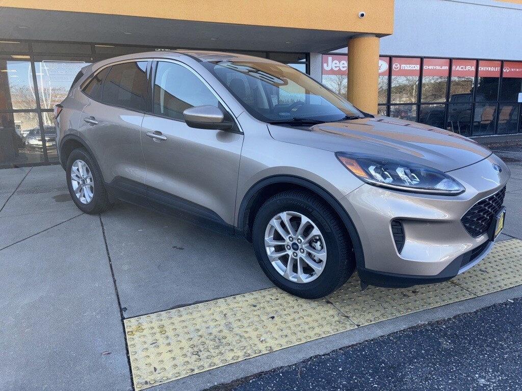 2021 Ford Escape Hybrid SE Desert Gold Metallic FWD eCVT 2.5L iVCT 44/37 City/Highway MPG FULLY SERVICED, ALLOY WHEELS, POWER LOCKS, POWER SEATS, POWER WINDOWS, REAR VIEW MONITOR PACKAGE, SAFETY, VALUE, VERSATILITY, BLUETOOTH, CLEAN AUTOCHECK, ONE OWNER, AFFORDABLE, Fully automatic headlights, Power door mirrors, Steering wheel mounted audio controls, Telescoping steering wheel.