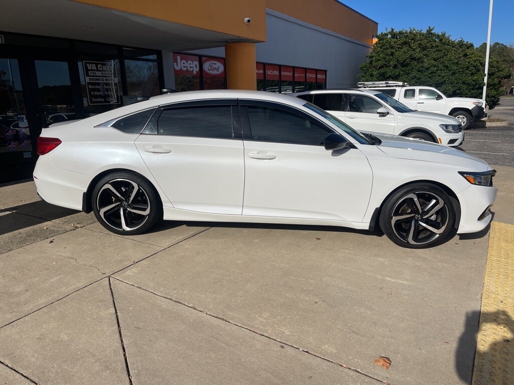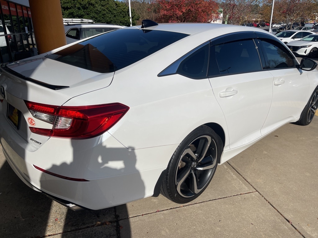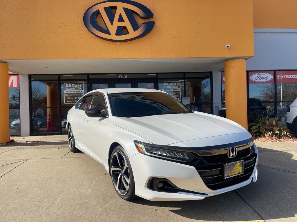 2021 Honda Accord Sport White FWD CVT 1.5T I4 DOHC 16V Turbocharged VTEC 29/35 City/Highway MPG FULLY SERVICED, ALLOY WHEELS, POWER LOCKS, POWER SEATS, POWER WINDOWS, REAR VIEW MONITOR PACKAGE, SAFETY, VALUE, VERSATILITY, BLUETOOTH, ONE OWNER, AFFORDABLE, Apple CarPlay/Android Auto, Fully automatic headlights, Power door mirrors, Steering wheel mounted audio controls.