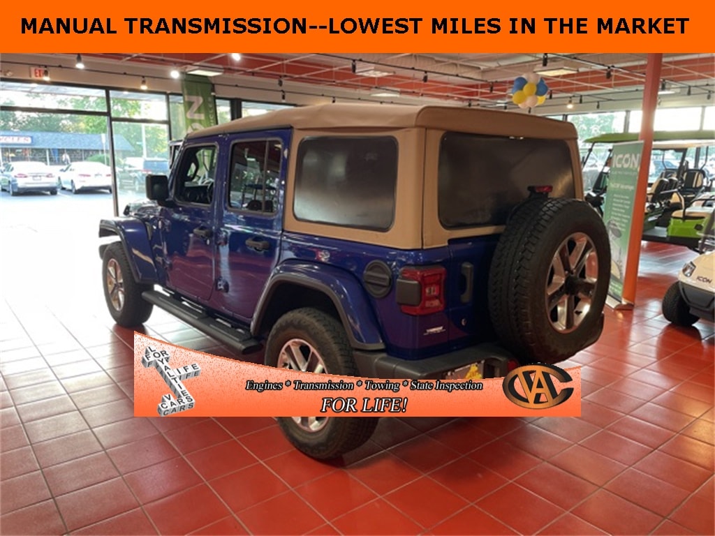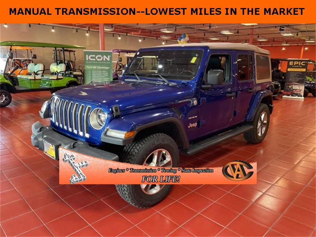 Ocean Blue Metallic Clearcoat 2020 Jeep Wrangler Unlimited Sahara 4WD 6-Speed Manual 3.6L V6 24V VVT CLEAN VEHICLE HISTORY...NO ACCIDENTS, ONE OWNER, LOYALTY FOR LIFE, LEATHER, HEATED SEATS, FOUR WHEEL DRIVE 4WD, NAVIGATION GPS NAV, APPLE CARPLAY, ANDROID AUTO, BLUETOOTH, REARVIEW / BACKUP CAMERA, BLIND SPOT MONITOR, HEATED STEERING WHEEL, FULLY SERVICED, NEW STATE INSPECTION, Wrangler Unlimited Sahara, 4D Sport Utility, 3.6L V6 24V VVT, 4WD, Ocean Blue Metallic Clearcoat, Black Leather, 3.45 Rear Axle Ratio, 4-Wheel Disc Brakes, 4G LTE Wi-Fi Hot Spot, 8.4" Radio & Premium Audio Group, 8.4" Touchscreen Display, ABS brakes, Advanced Brake Assist, Advanced Safety Group, Alpine Premium Audio System, AM/FM radio: SiriusXM, Apple CarPlay, Apple CarPlay/Android Auto, Auto-Dimming Rear-View Mirror, Automatic temperature control, Blind Spot & Cross Path Detection, Brake assist, Cold Weather Group, Daytime Running Lamps LED Accents, Dual front impact airbags, Dual front side impact airbags, Electronic Stability Control, Front anti-roll bar, Front Bucket Seats, Front Center Armrest w/Storage, Front dual zone A/C, Front fog lights, Front LED Fog Lamps, Front License Plate Bracket, Full Speed Forward Collision Warning Plus, Fully automatic headlights, Garage door transmitter, Google Android Auto, GPS Navigation, Heated Front Seats, Heated Steering Wheel, Heavy Duty Suspension w/Gas Shocks, Integrated roll-over protection, Integrated Voice Command w/Bluetooth, Leather steering wheel, Leather Trimmed Bucket Seats, LED Lighting Group, LED Reflector Headlamps, LED Taillamps, MOPAR All-Weather Floor Mats (DISC), MOPAR Black Tube Steps, Outside temperature display, ParkSense Rear Park Assist System, ParkView Rear Back-Up Camera, Power door mirrors, Power windows, Quick Order Package 23G, Radio: Uconnect 4C Nav w/8.4" Display, Rear anti-roll bar, Remote keyless entry, Remote Proximity Keyless Entry, Safety Group, Speed control, Steering wheel mounted audio controls, Telescoping steering wheel, Tilt steering wheel, Traction control, Variably intermittent wipers, Voltmeter, Wheels: 18" x 7.5" Polished w/Gray Spokes. Odometer is 12983 miles below market average!